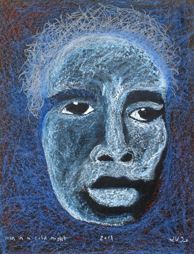 Similarly, in Dark Side of Me there is a beauty and dimensionality that seems as if the subject will reach through the paper and touch the viewer’s hand. With bold and moving drawings like Man in a Cold Night we can see how Toonoo infuses his work with an intensity and life that is based on his use of colour and the activity of his sweeping and blended lines, while separating the features of the subject’s face from any body or context.