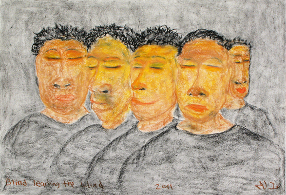Affected by religion and strong spiritual tendencies, Toonoo often develops this into personalized statements of his spiritual anxiety. In Blind Leading the Blind, Toonoo uses a biblical parable to represent his experience of listening to the radio when people were “talking about love and God but then they seemed to hate others who are not like them.”